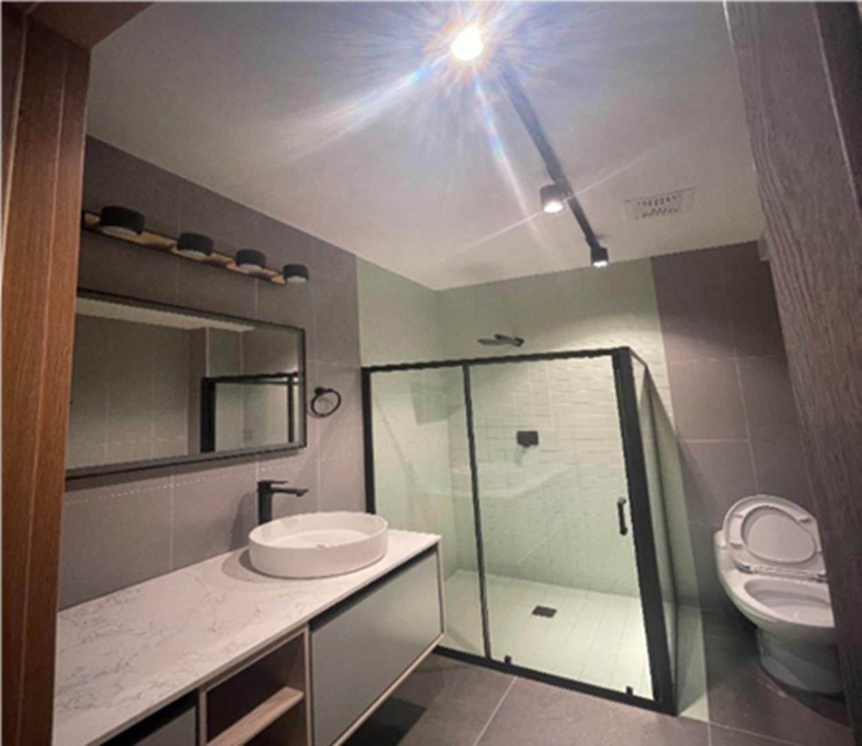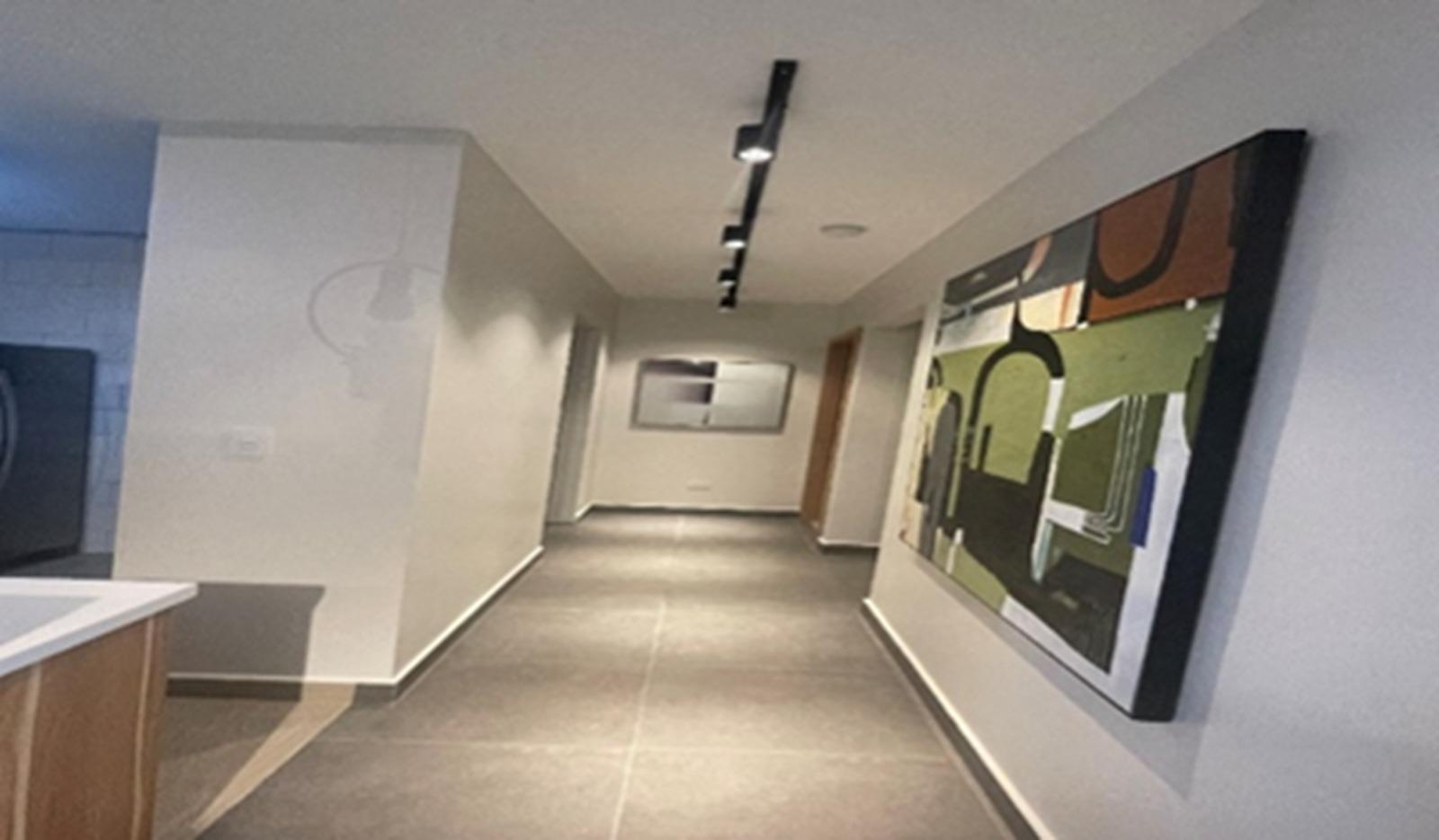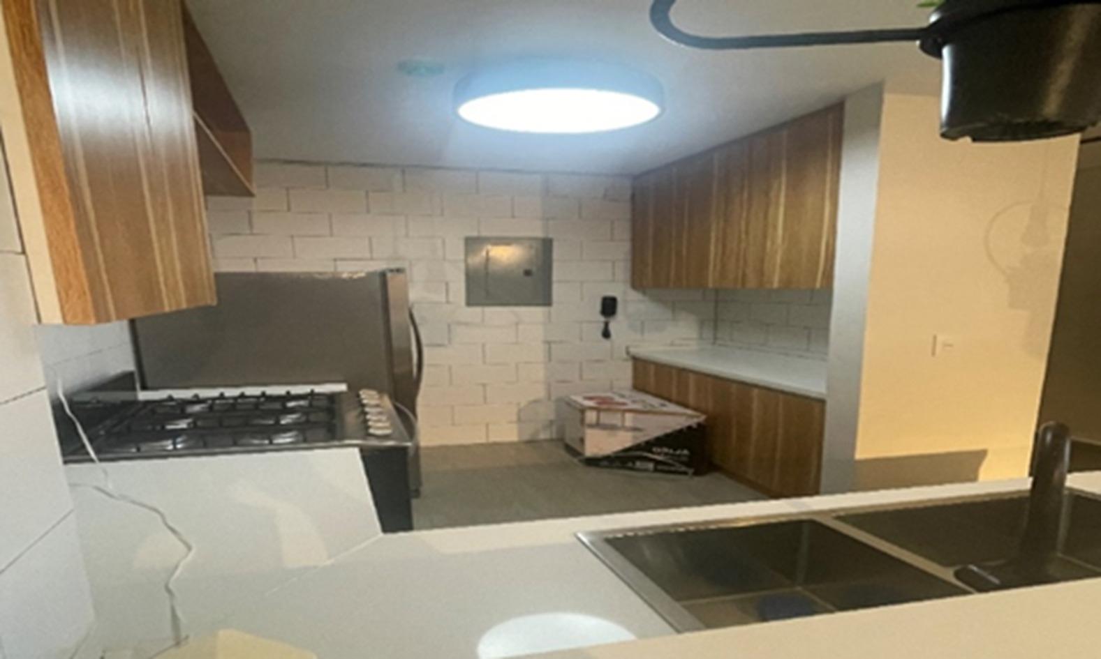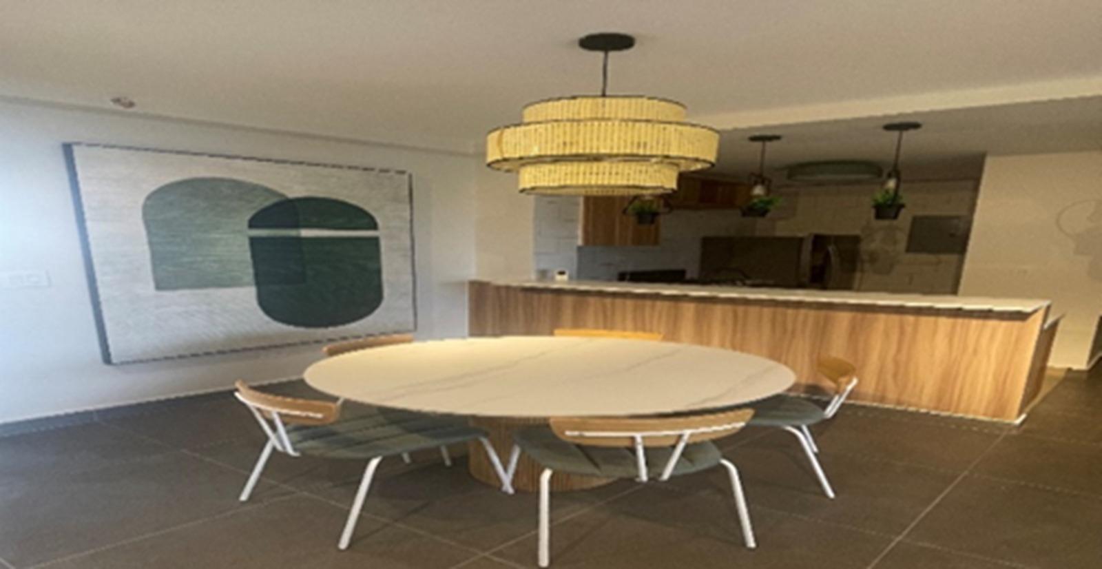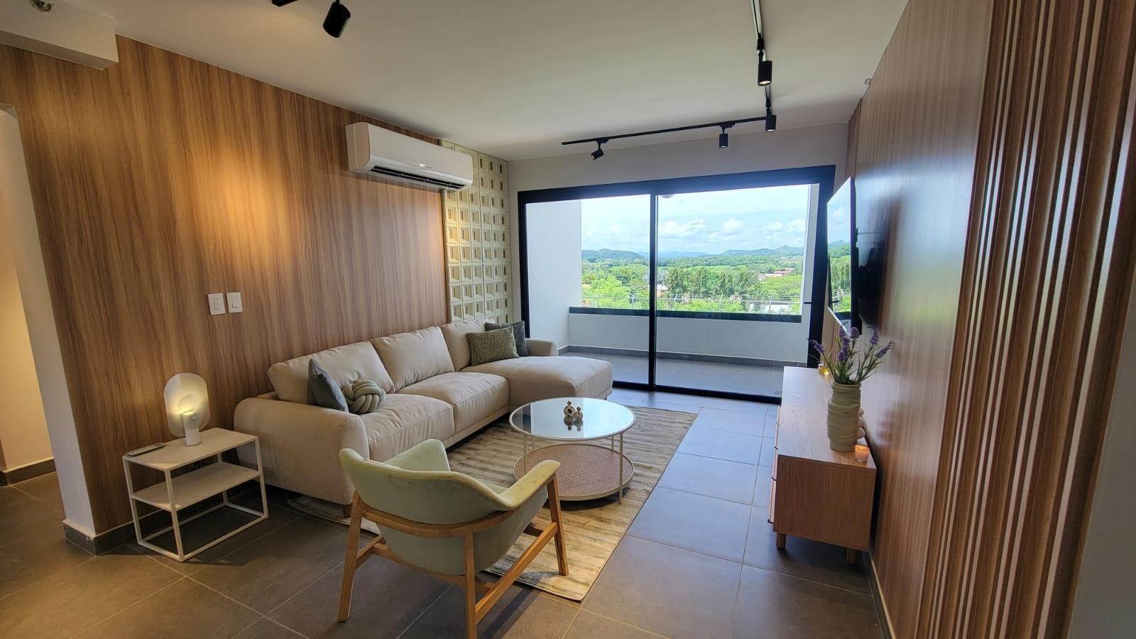 Luxurious apartment with high-end finishes, centrally located near shopping centers, hospitals, universities, hotels, and shops. It features potable water service, a security gate, surveillance cameras, and optional storage units. The apartment includes 2 bedrooms, an open kitchen, a living/dining room, a balcony, a walk-in closet, and a laundry room.