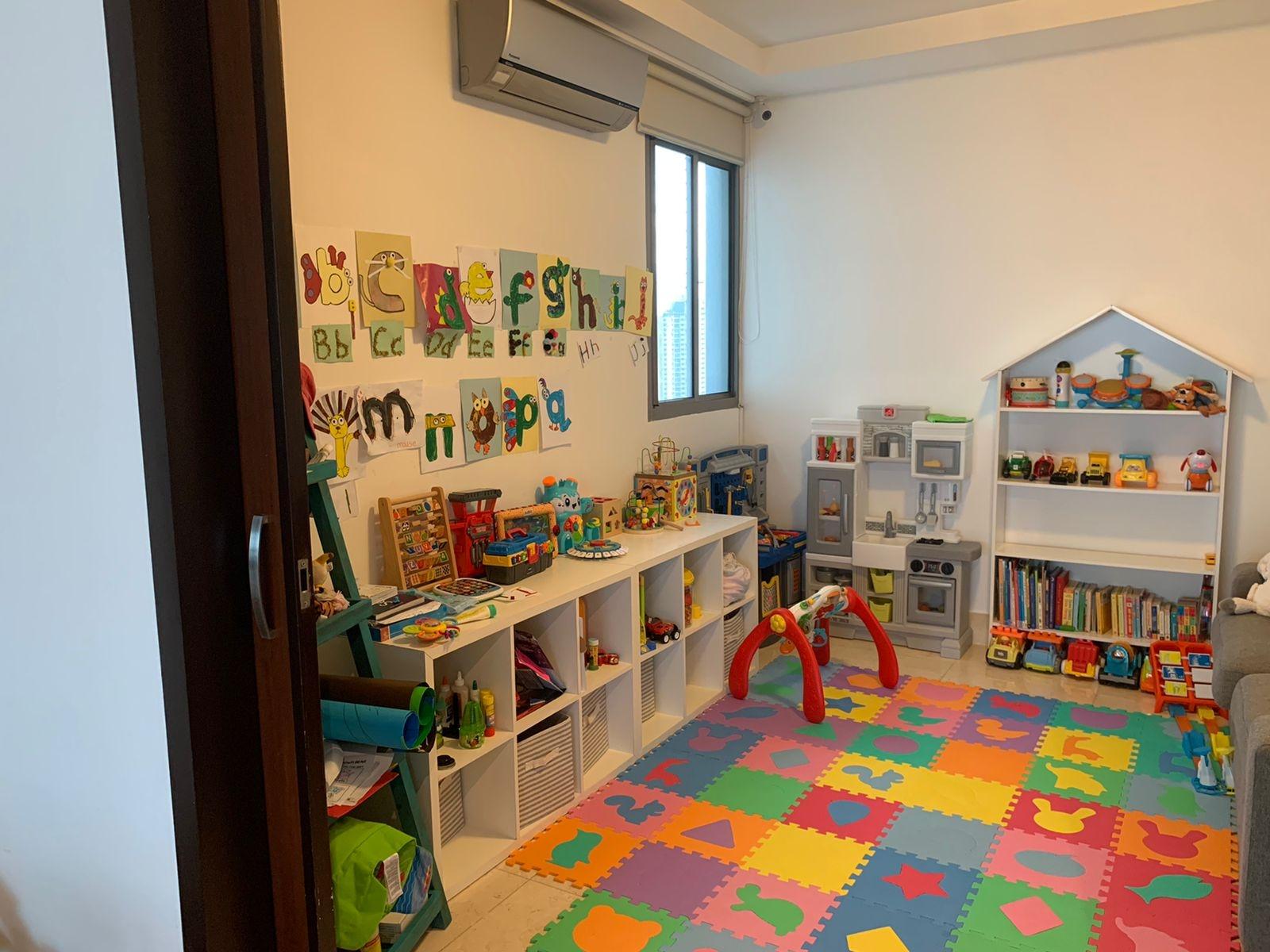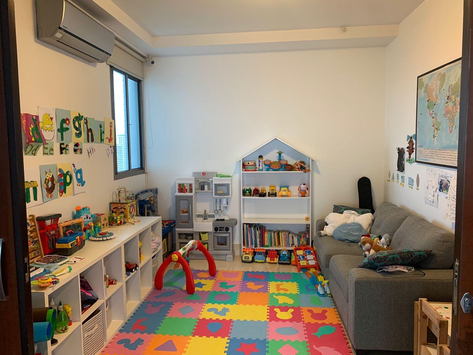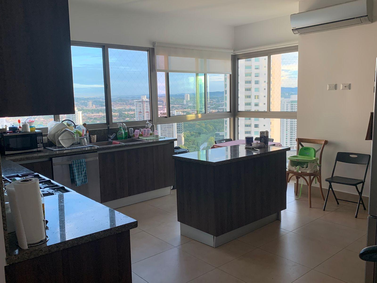 323 meters, 3 bedrooms, 3.5 bathrooms, living room, dining room, enclosed den, enclosed kitchen with island and breakfast bar, laundry room, maid's quarters and bathroom, 3 parking spaces and 1 storage unit.