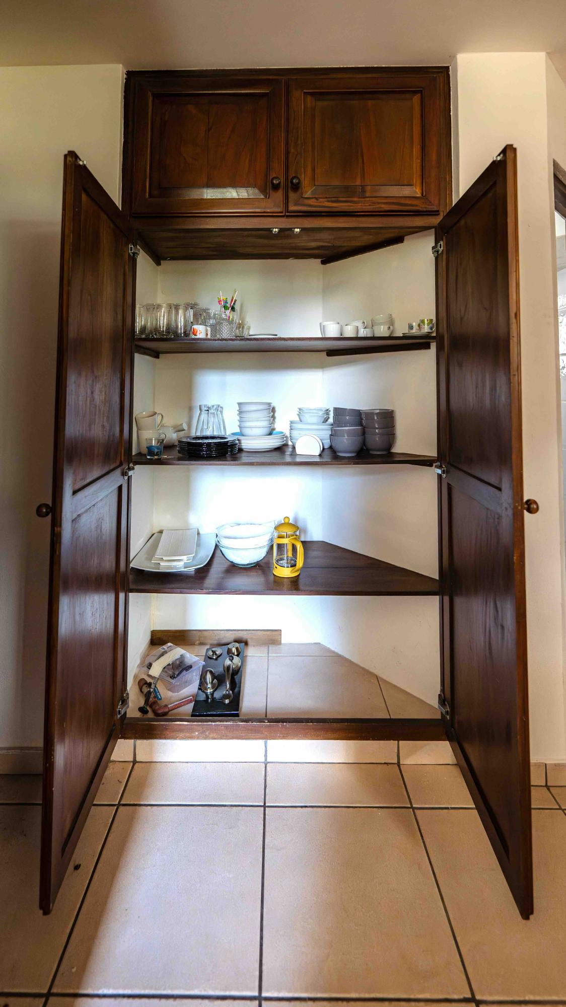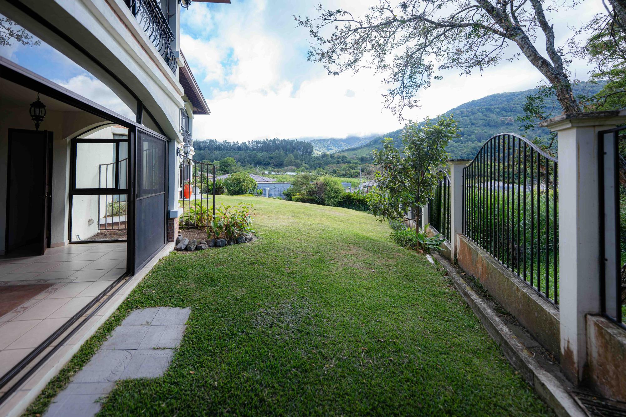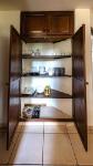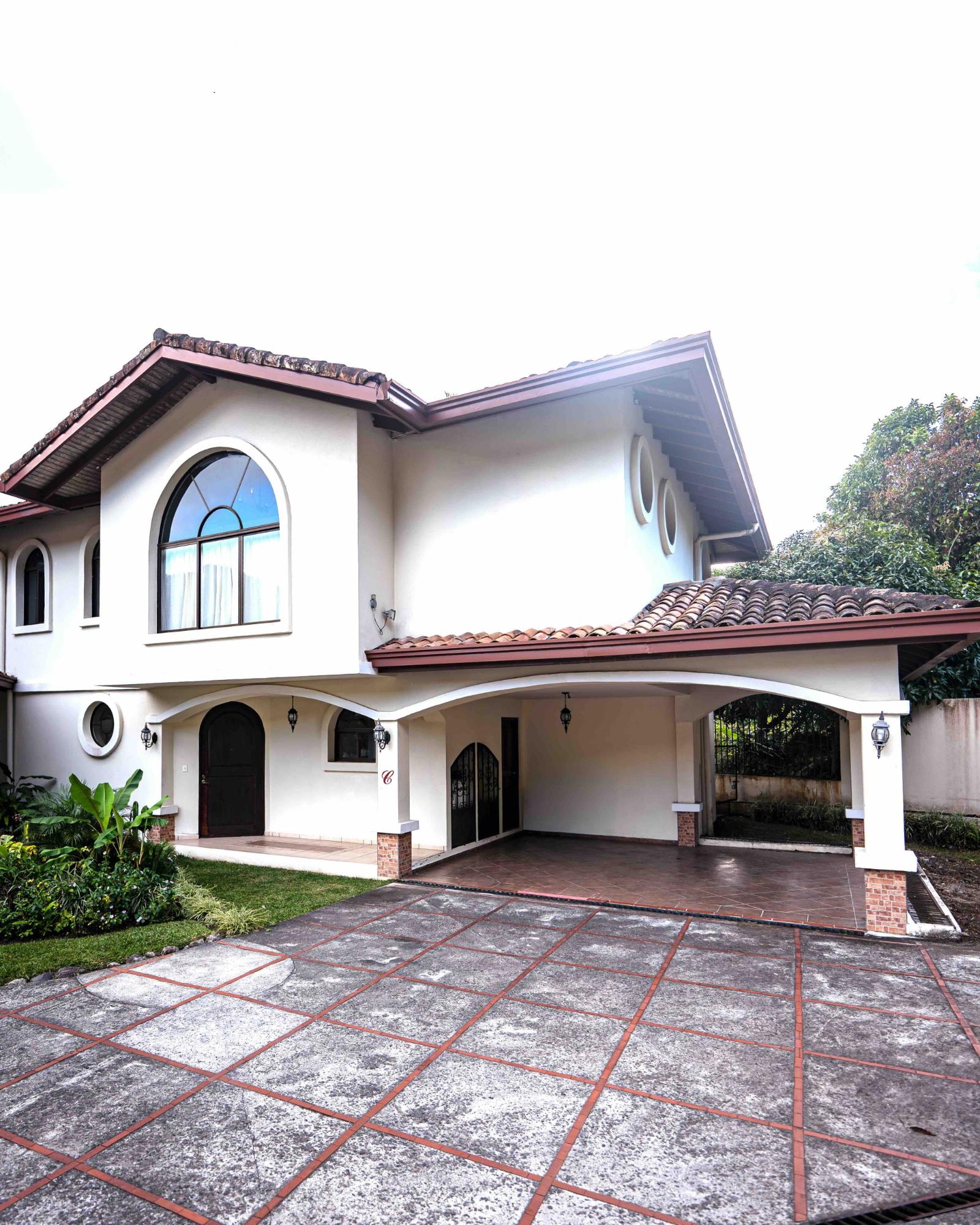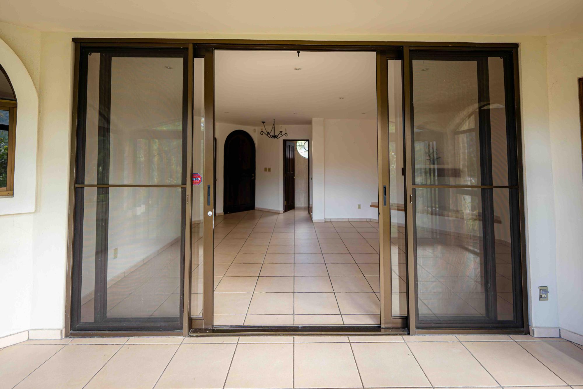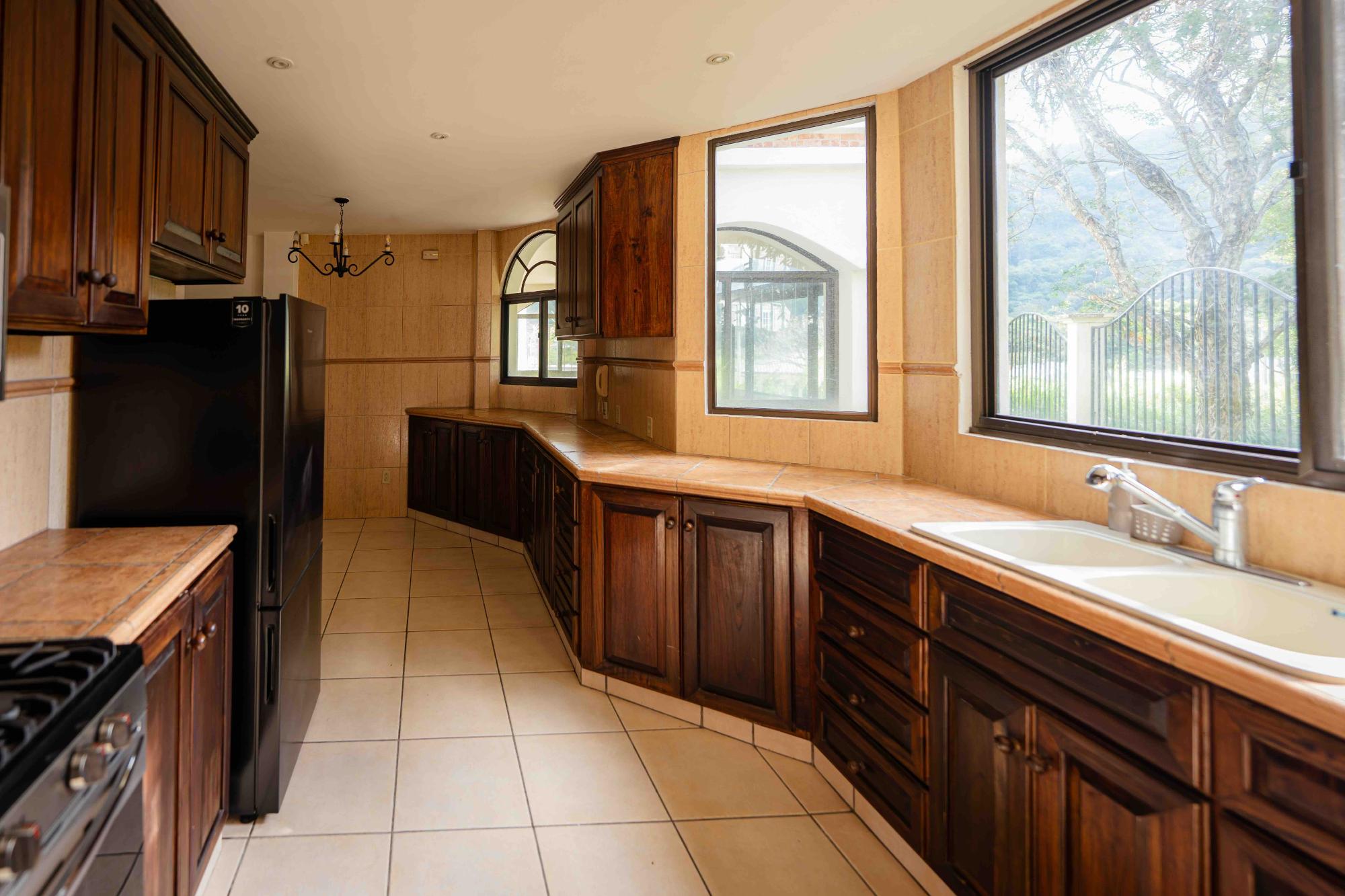 It features two bedrooms, each with its own bathroom and walk-in closet, on the upper floor. Downstairs there is a foyer, a guest bathroom, a closed kitchen, and a living/dining room. Two covered parking spaces are included. A separate storage room is also provided.
