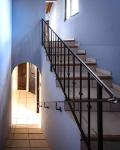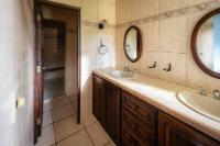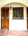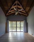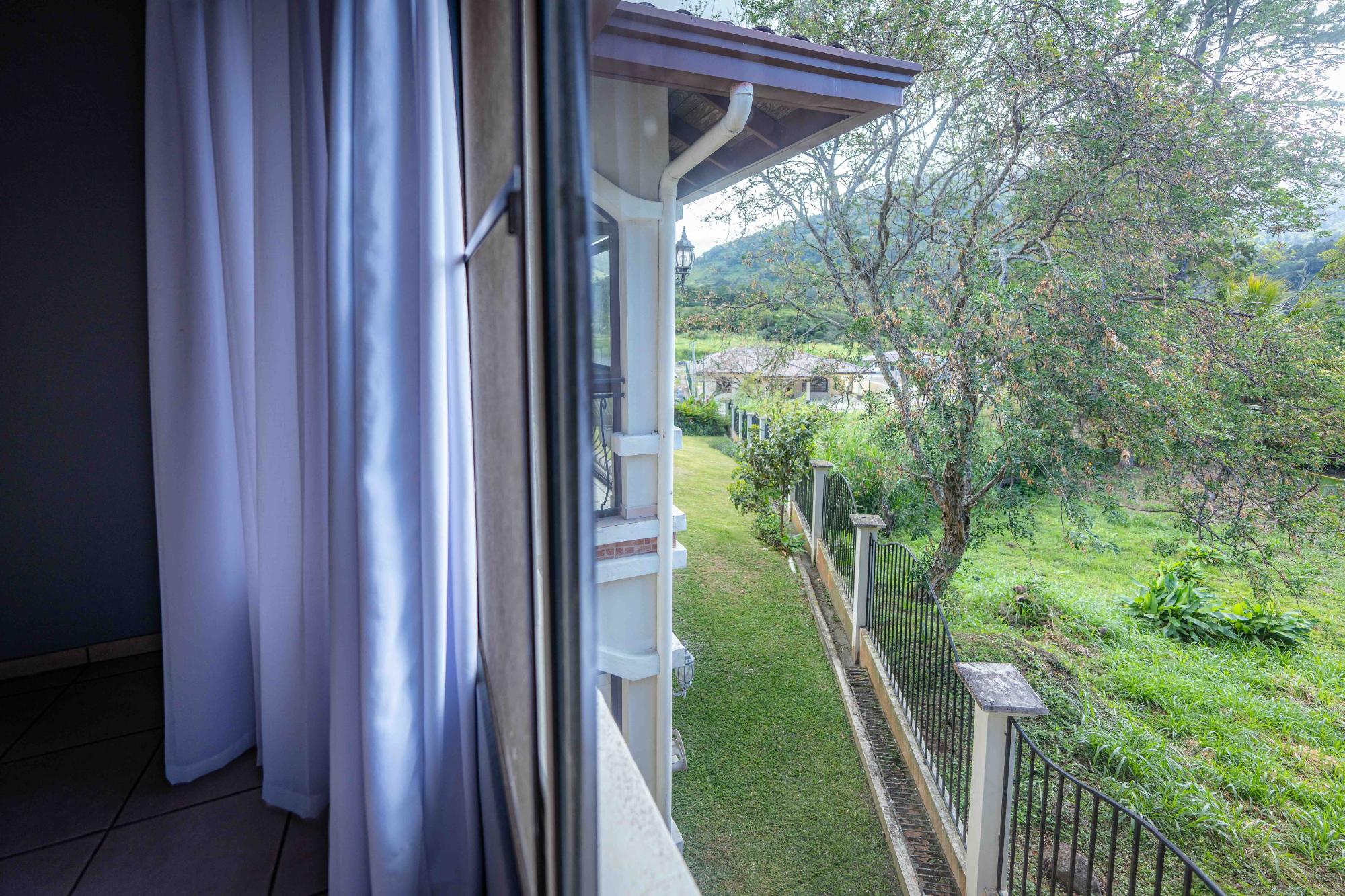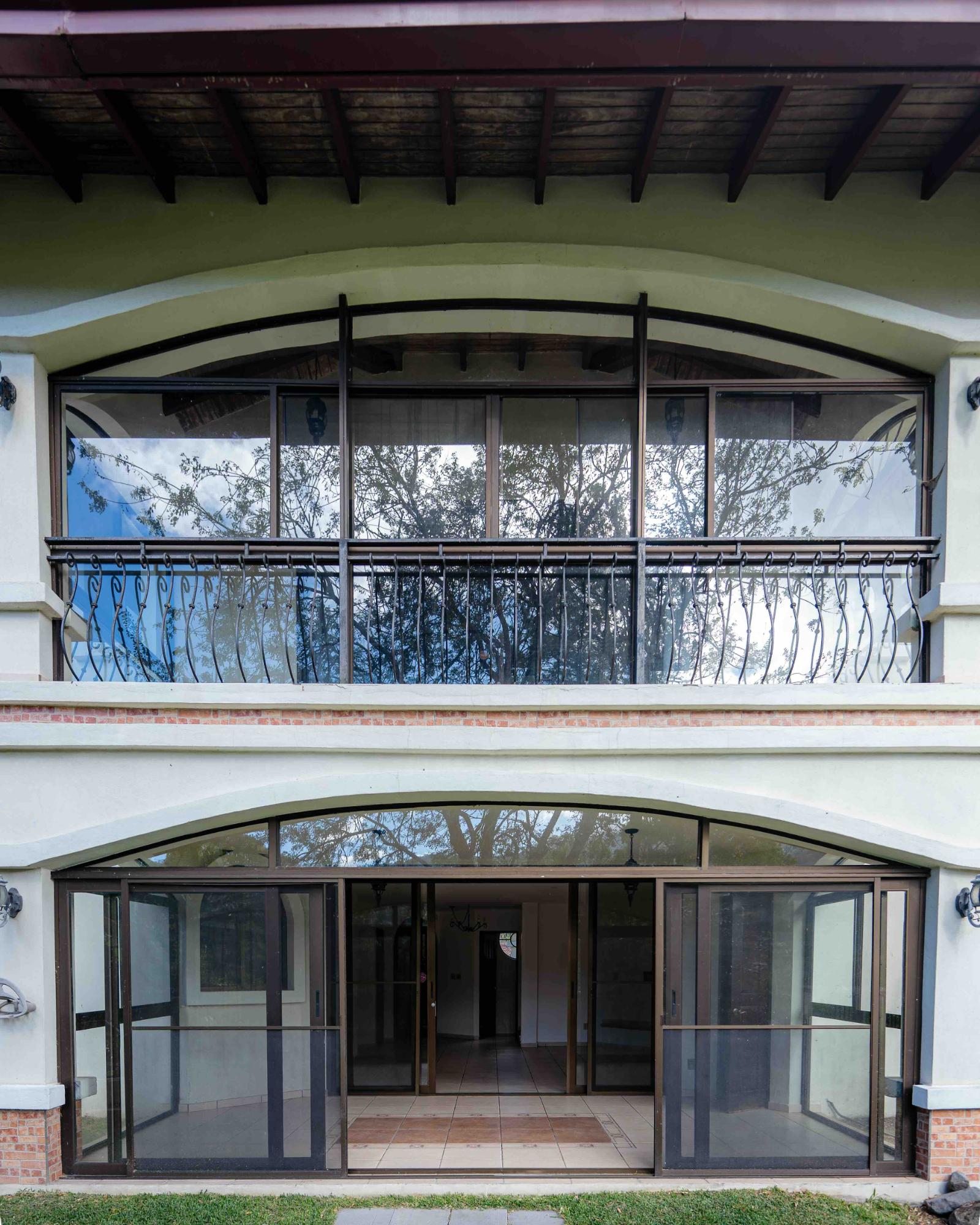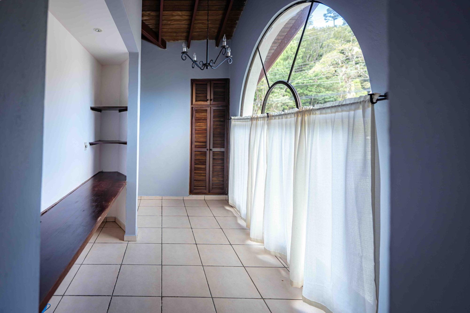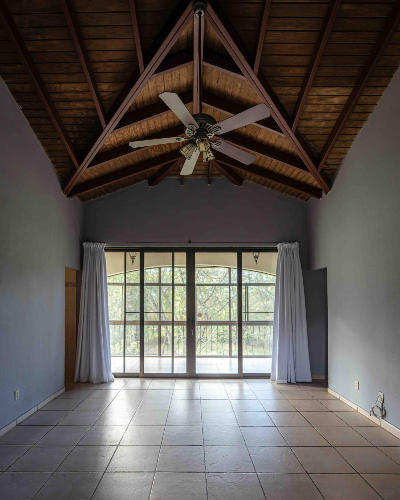 It features two bedrooms, each with its own bathroom and walk-in closet, on the upper floor. Downstairs there is a foyer, a guest bathroom, a closed kitchen, and a living/dining room. Two covered parking spaces are included. A separate storage room is also provided.
